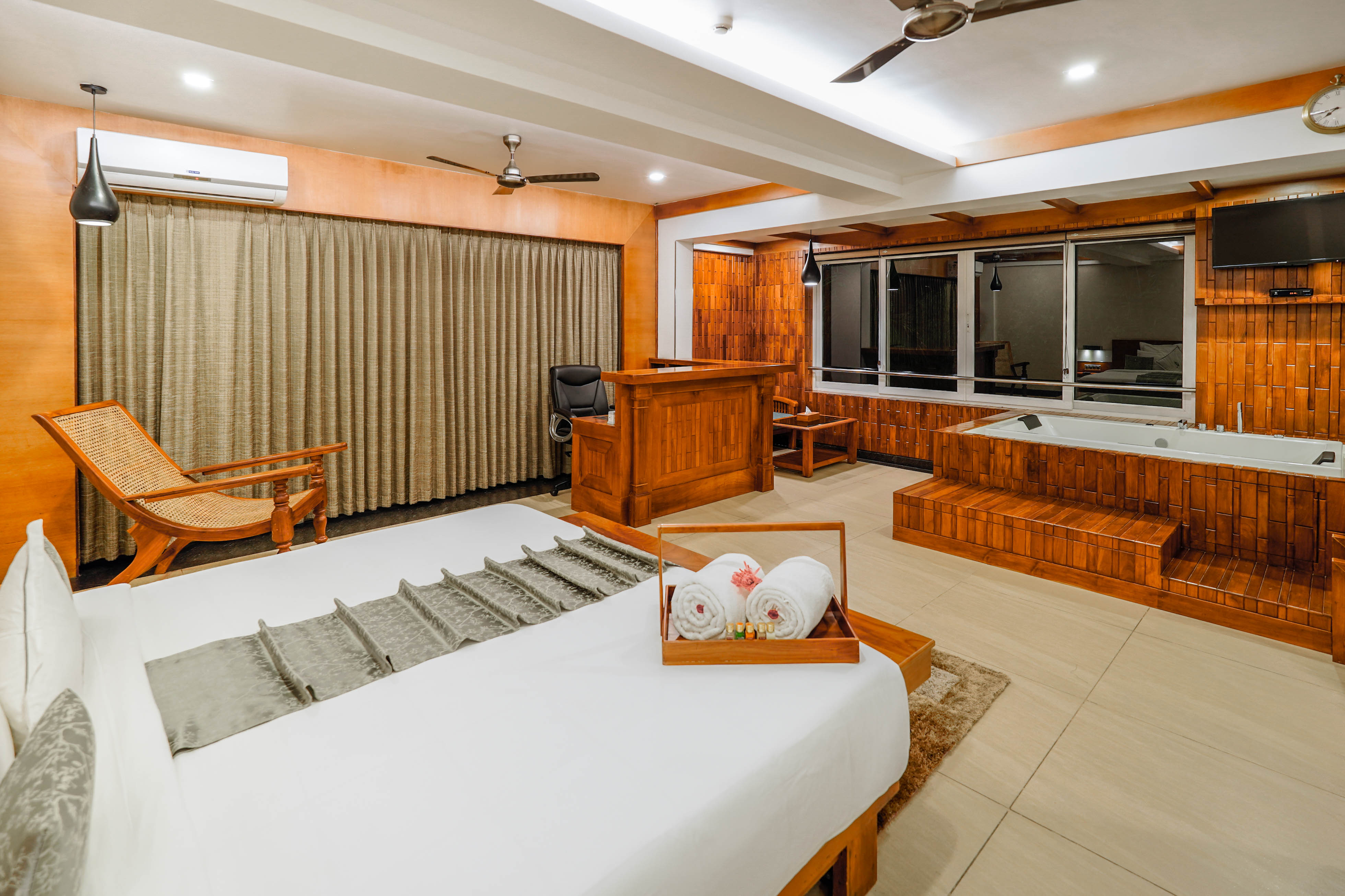Not far away, Chandy’s Windy Woods rises on terraced slopes, surrounded by misty plantations and forested valleys. Inspired by Munnar’s name—meaning the confluence of three rivers—this 5-star hilltop resort brings guests closer to nature with elegant rooms, cloud-kissed views, and refined dining. Whether you're after a romantic getaway, a nature-filled escape, or a luxury stay in Munnar, Windy Woods offers an unforgettable experience where comfort and scenery go hand in hand.