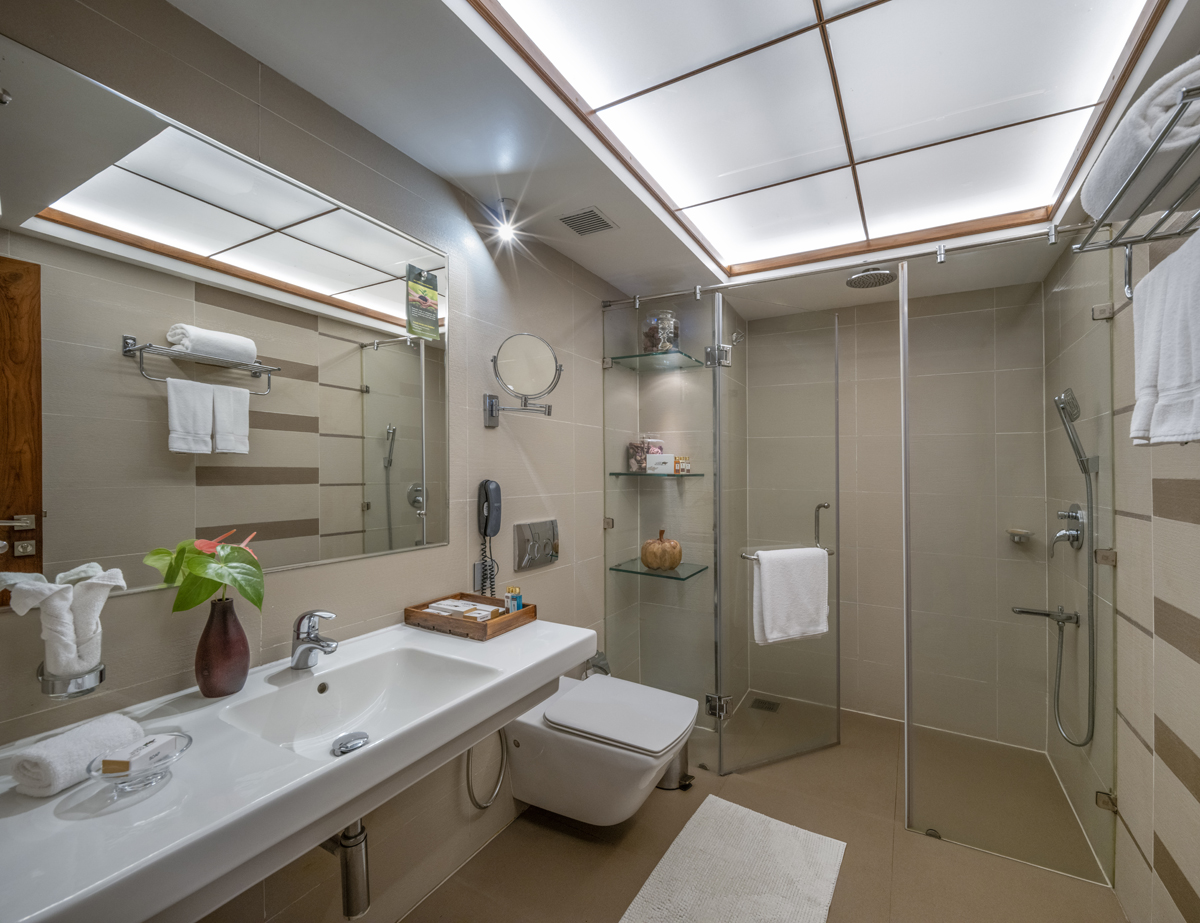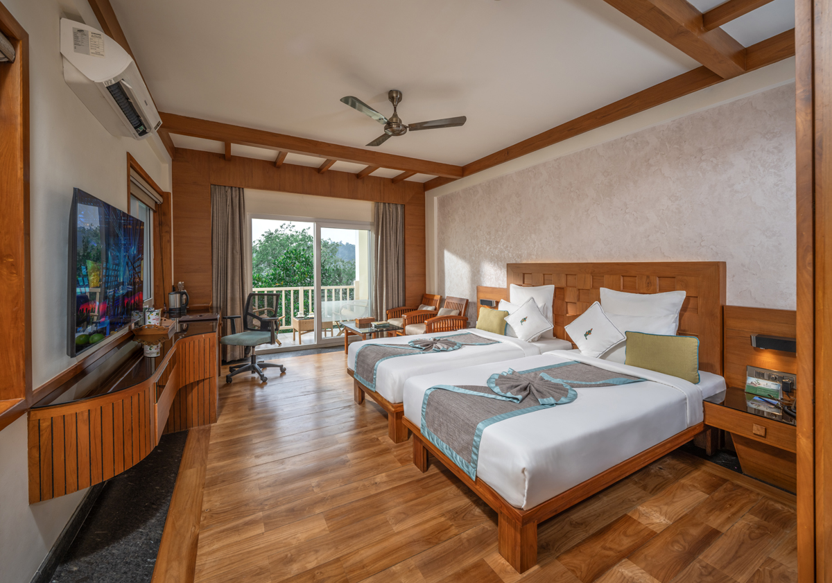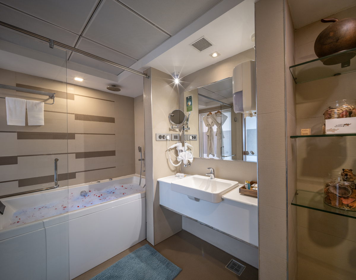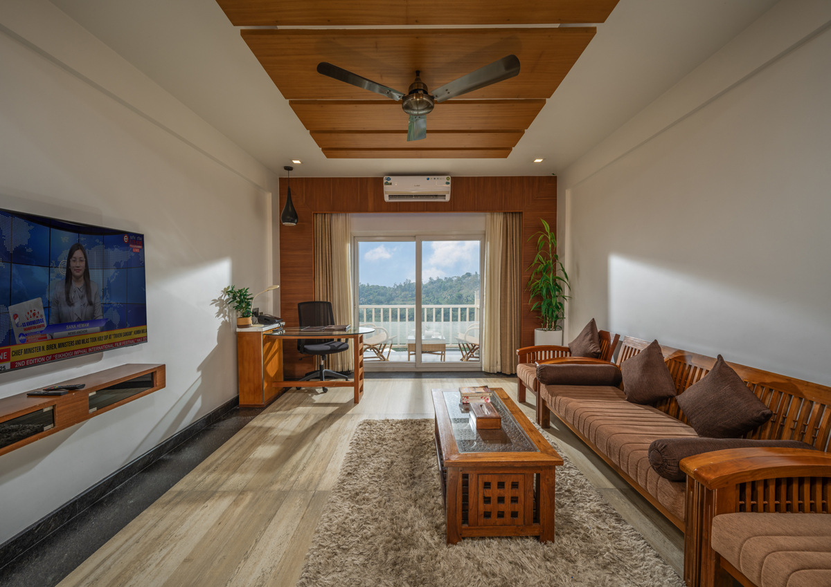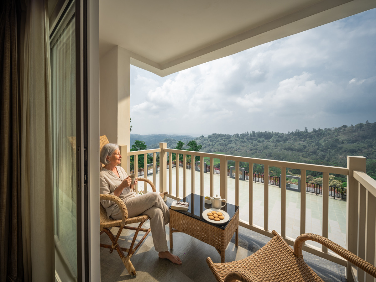 Spacious and thoughtfully designed, it provides just the right setting for a relaxing break for couples or small families. Complete with every necessary amenity, it includes a private balcony with mountain views that extend even more beautifully from the common terrace.