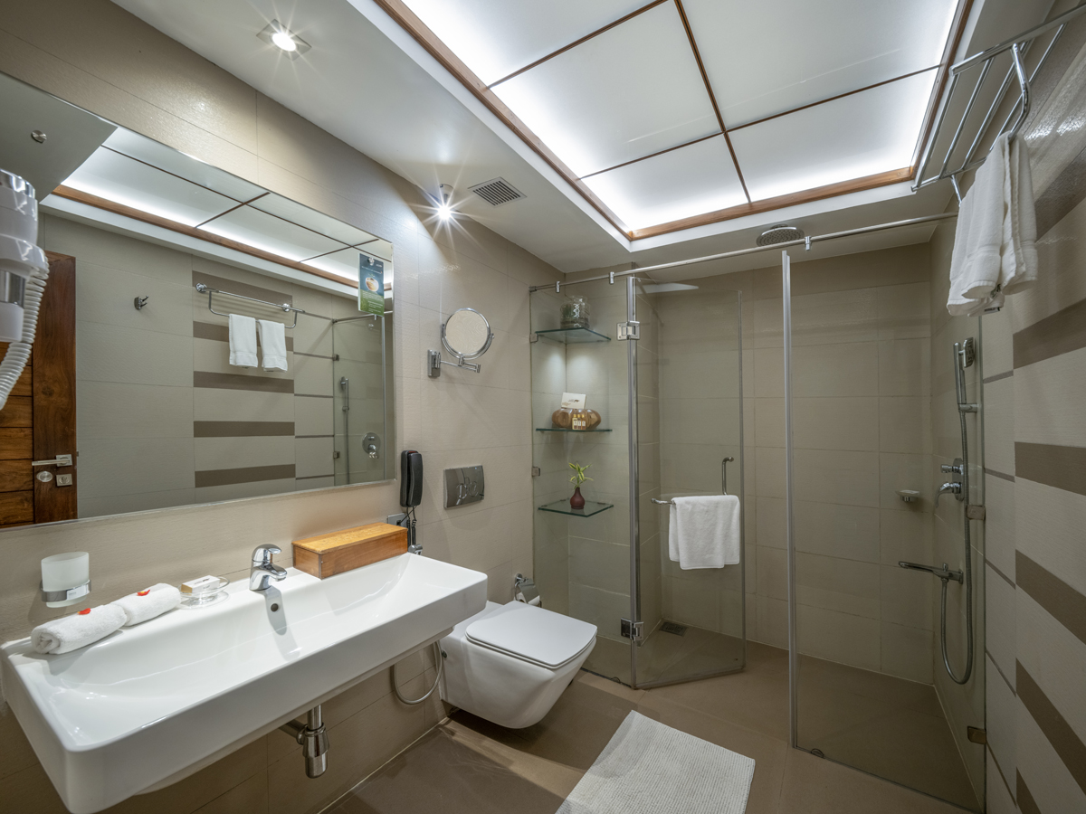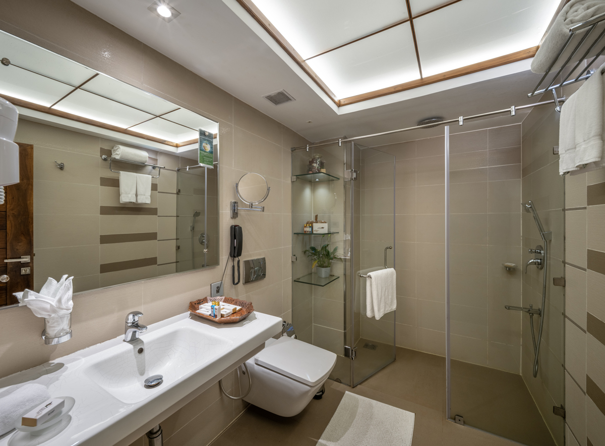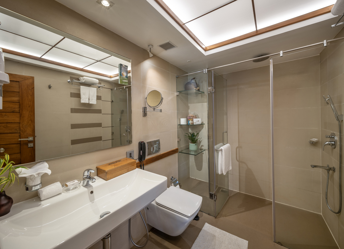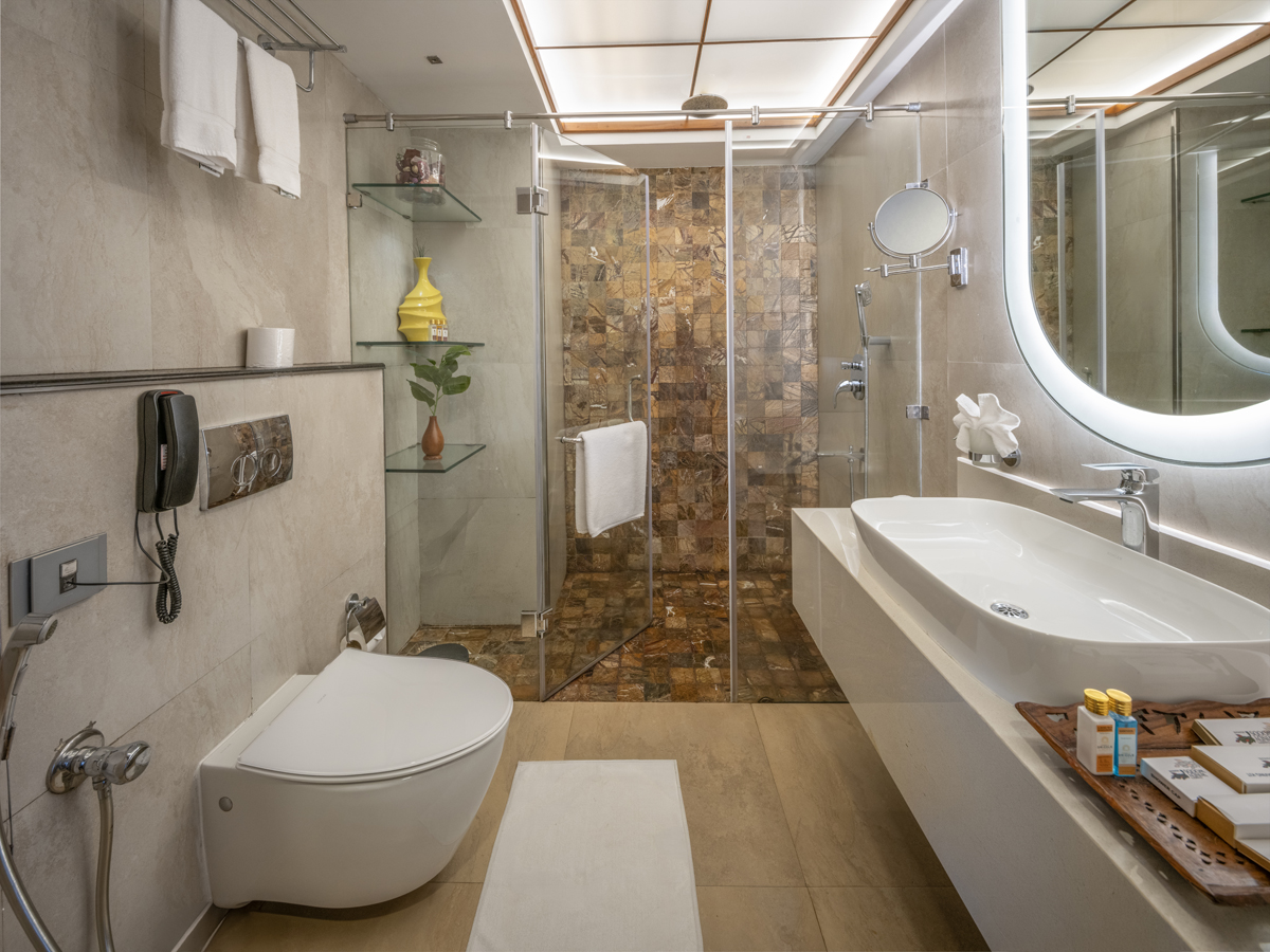 Spacious and thoughtfully designed, it provides just the right setting for a relaxing break for couples or small families. Complete with every necessary amenity, it includes a private balcony with mountain views that extend even more beautifully from the common terrace.